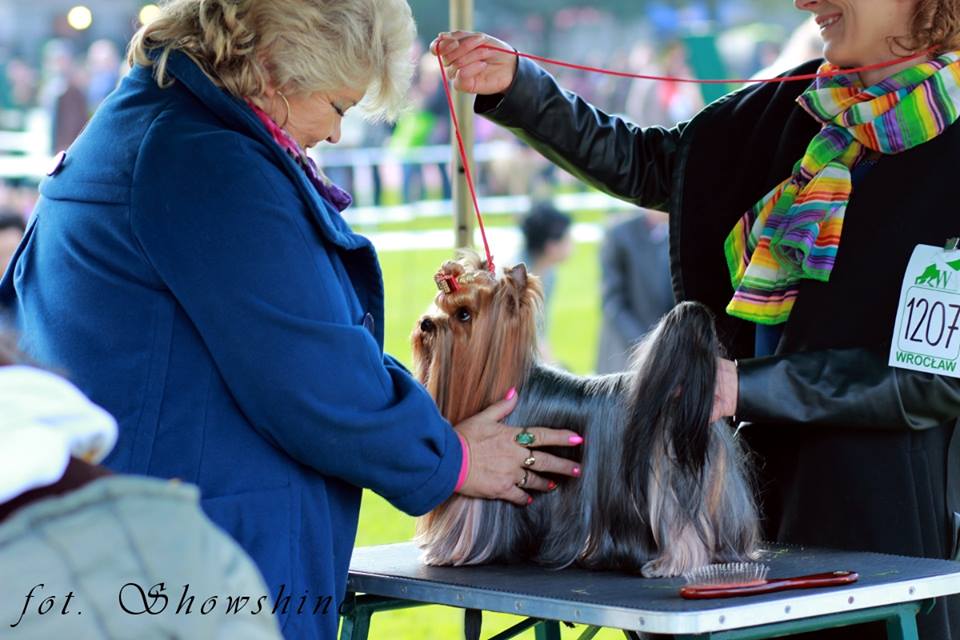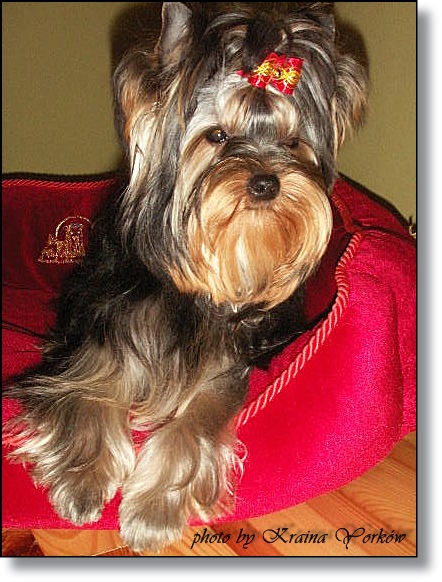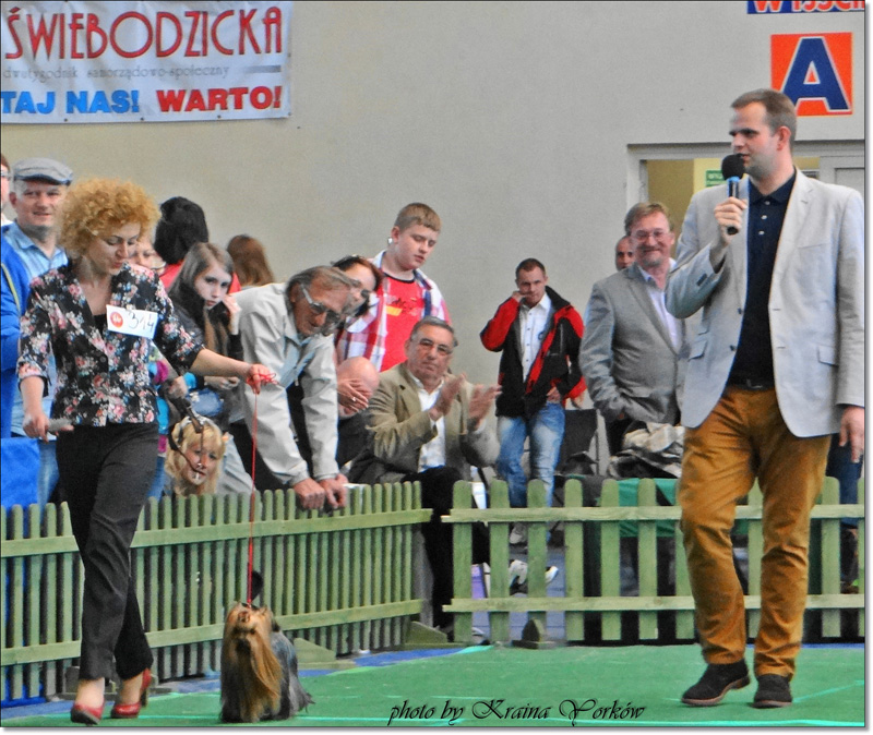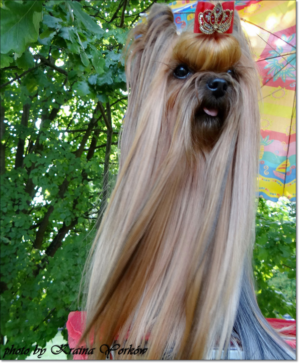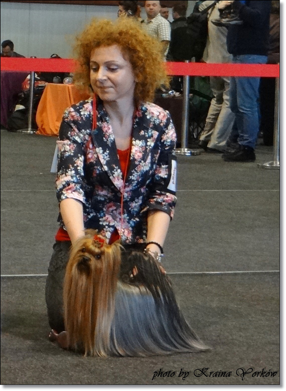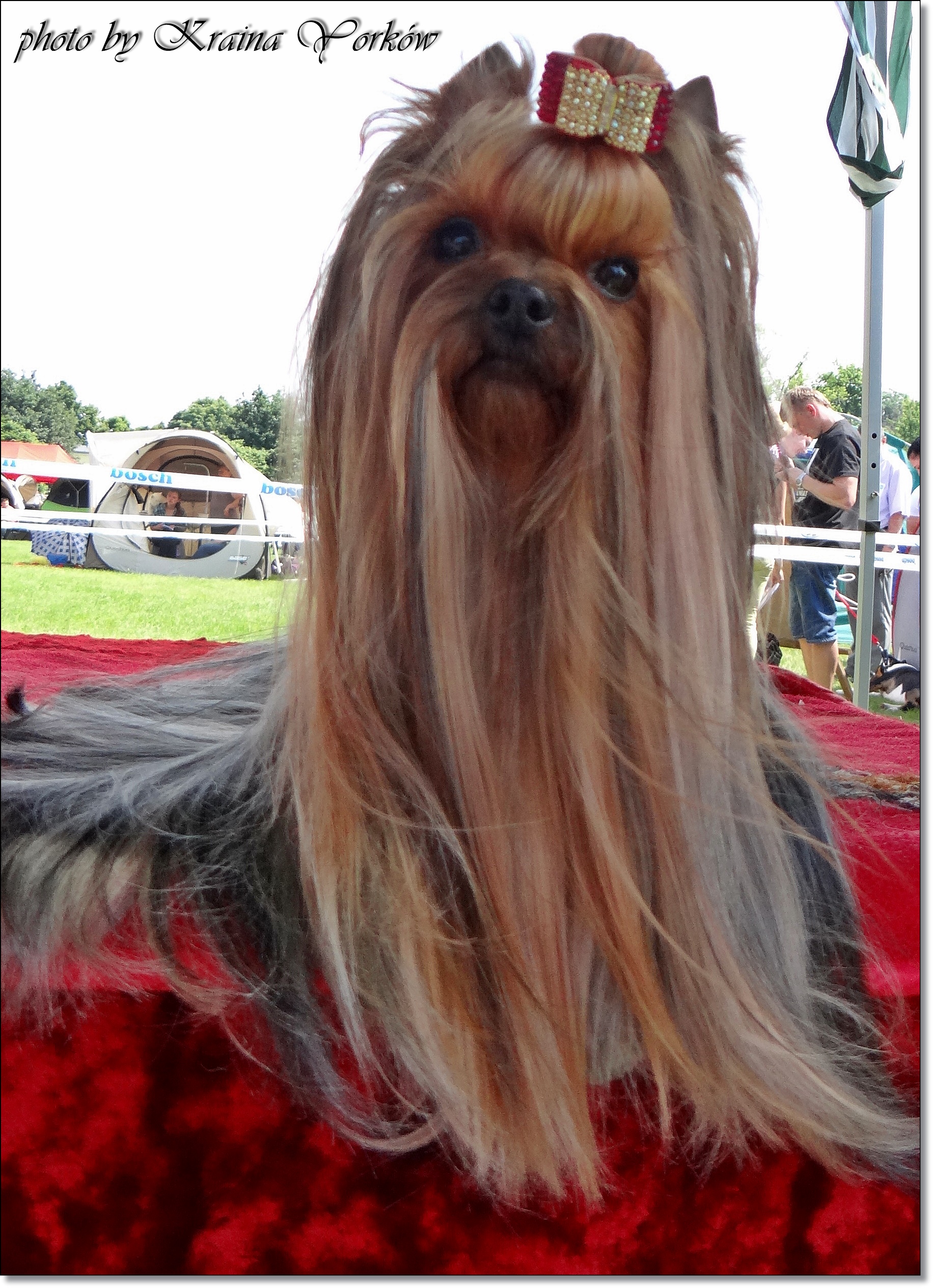 The judge’s description : "Elegant bitch, excellent expression, correct topline, correct chest, excellent coat, perfect colour" Carmen D' La Cruz Kraina Yorków