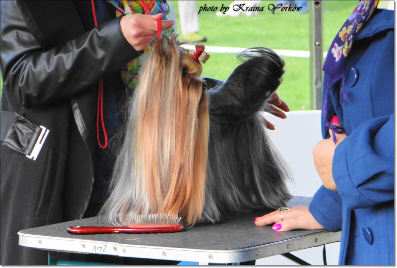 The judge’s description: "An excellent type, pretty feminine head, perfect topline, beautiful chest, perfect angulation, ładnie owłosiona głowa - lekko osmolona, coat of a perfect quality, perfect movement" Carmen D' La Cruz Kraina Yorków Mł. Ch